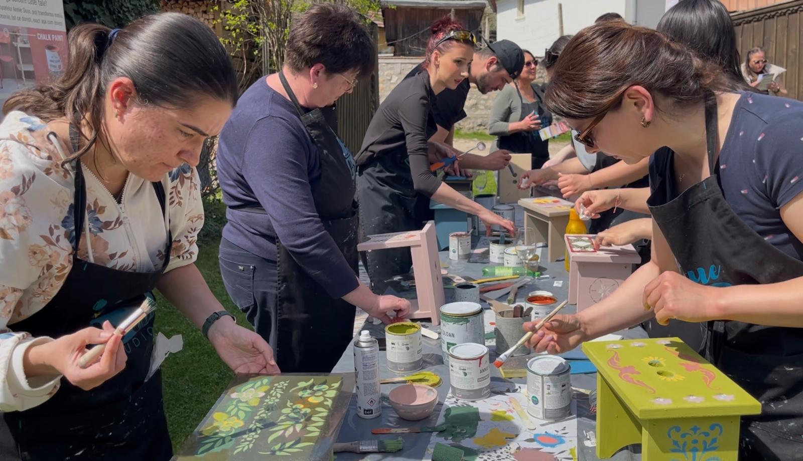 Unul dintre atelierele cu activități pentru turiști a fost cel de pictură pe lemn. Cei prezenți au putut afla cum se poate recondiționa mobilierul vechi.