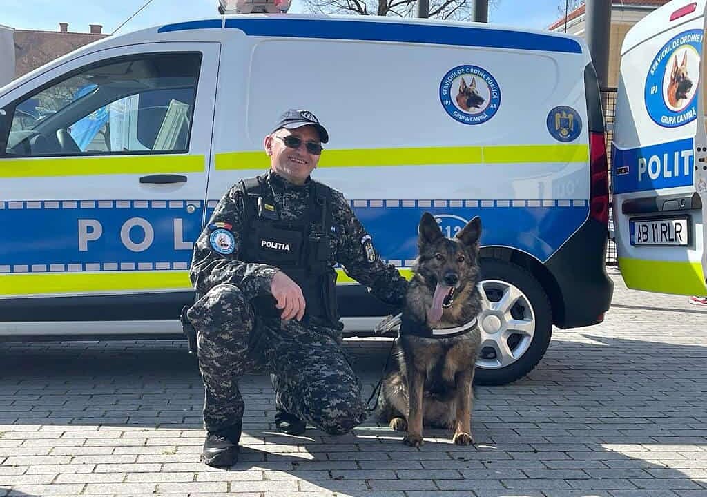 VIDEO: Sara, câinele polițist al IPJ Alba, dresată să prindă infractori. Legătura puternică dintre agentul de poliție și patruped