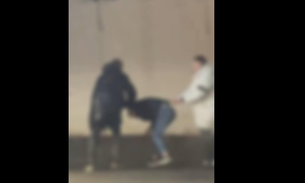 Din imagini se poate vedea că un tânăr este căzut la pământ și este afectat de lovituri. Un alt ins (cel în geacă albă) încearcă să îl ridice, dar victima este la pământ și lovită de către agresor.