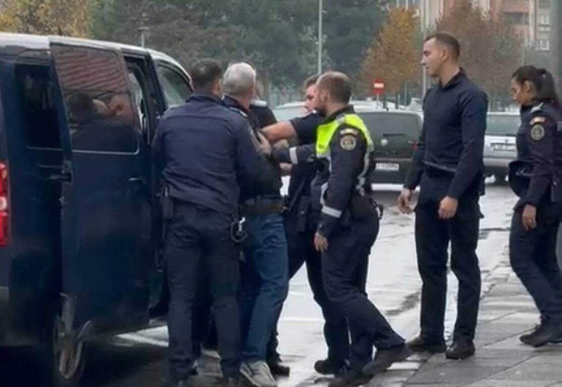 Din imaginile transmise de cititor, se vede că, în zona stației de autobuz din centru, în apropierea magazinului Lidl, acesta a fost încătușat și pus cu forța în autospeciala Jandarmeriei, pentru că bărbatul se împotrivea acțiunii echipajelor de ordine.