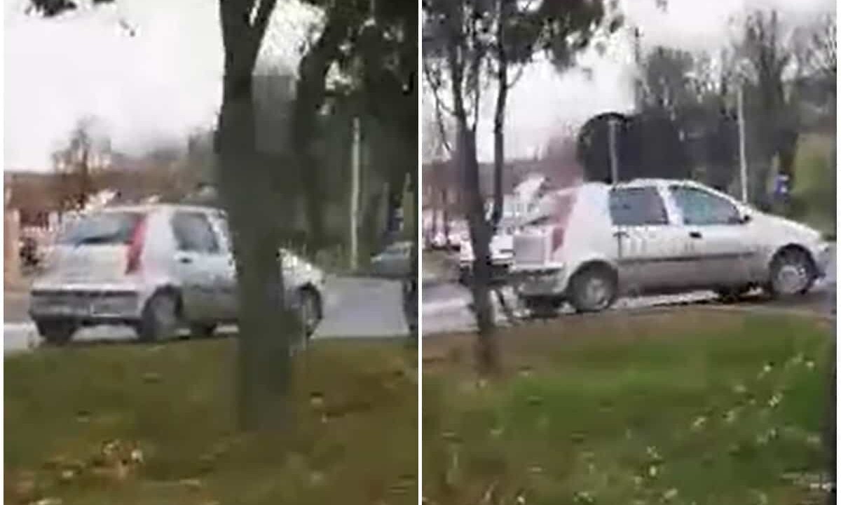 În imagini se observă cum mașina vine dinspre cimitir, pe contrasens, pe una dintre cele mai circulate străzi (în mod normal) din Alba Iulia și intră cu nonșalanță în sensul giragoriu din zonă.