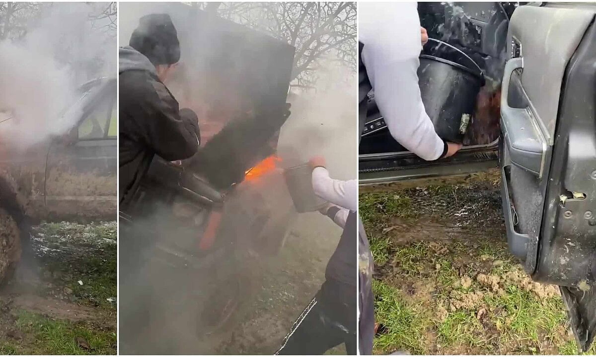 Echipajul de la Poliție și o parte din pompieri cu stingătoarele în spate au urcat printr-un noroi crunt spre locația unde ardea mașina. Cealaltă parte de pompieri a fost dusă de către noi cu altă mașină. În acest timp mașina a ars complet în partea motorului, iar de la motor a intrat și în partea pasagerilor din față, inclusiv bordul mașinii.
