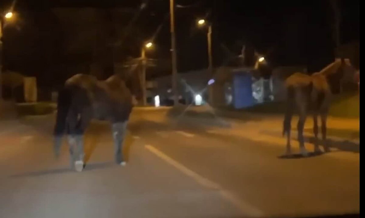 Într-un video, caii se plimbă liniștiți pe stradă, în zona bazinului, blocând circulația autoturismelor.