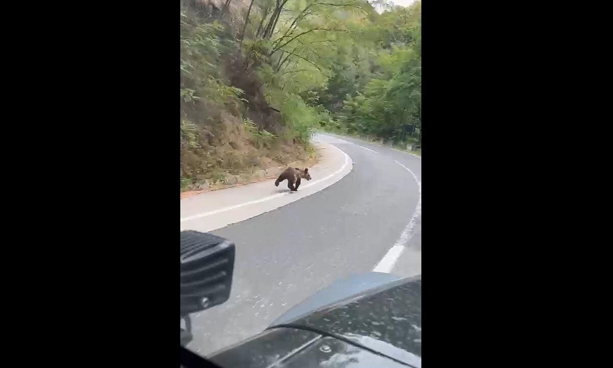 În imagini se poate observa cum animalul alearga în fața mașinii, pe marginea drumului. În zonă, în ultima perioadă au fost văzuți mai mulți urși și au fost emise avertizări de tipul RO-Alert.