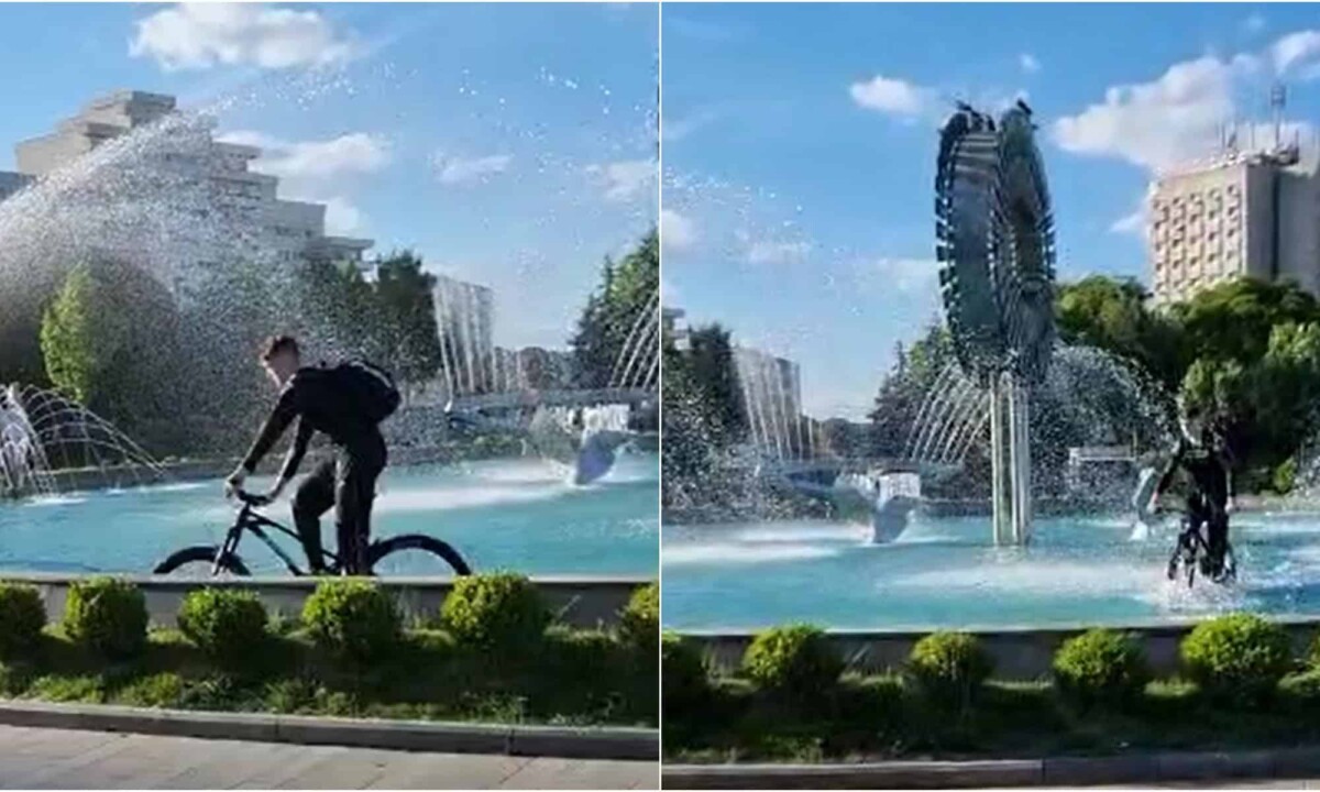 VIDEO ȘTIREA TA: Un tânăr a intrat cu bicicleta în fântâna arteziană din Parcul Unirii din Alba Iulia