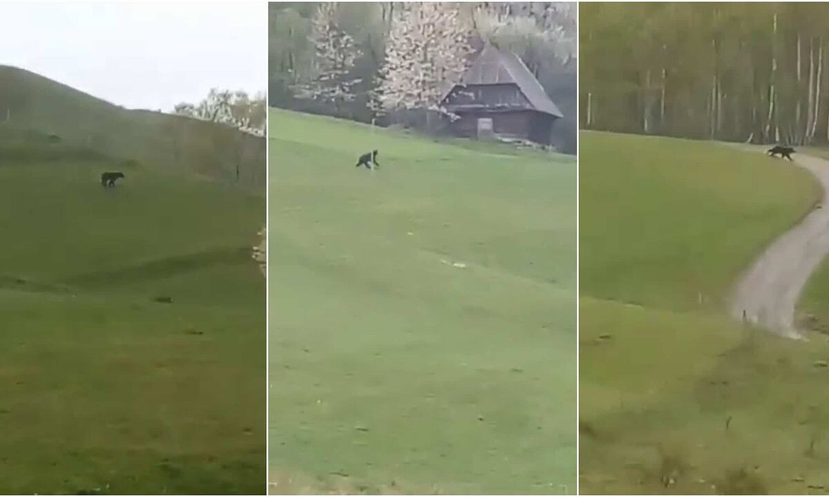 Un urs a fost filmat sâmbătă, pe o pășune aflată în zona exploatării de la Roșia Poieni, în Munții Apuseni.