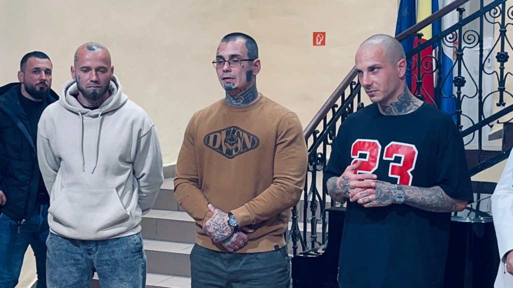 Trei bărbați cu o statură impozantă, tatuați din ”cap până în picioare” cu fapte grave la activ, care au vorbit despre artă și încercarea lor de a se reabilita. Este o discuție grea, care poate fi privită din două unghiuri.