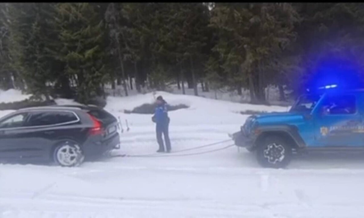 VIDEO: Turiști rămași blocați cu mașina în zăpadă pe Transalpina. Au fost salvați de jandarmii din Alba