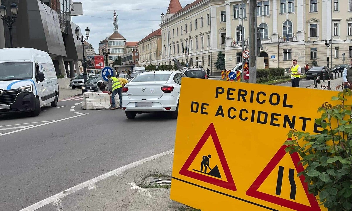 VIDEO: Un nou giratoriu temporar în centrul municipiului Alba Iulia. Traficul a fost reconfigurat