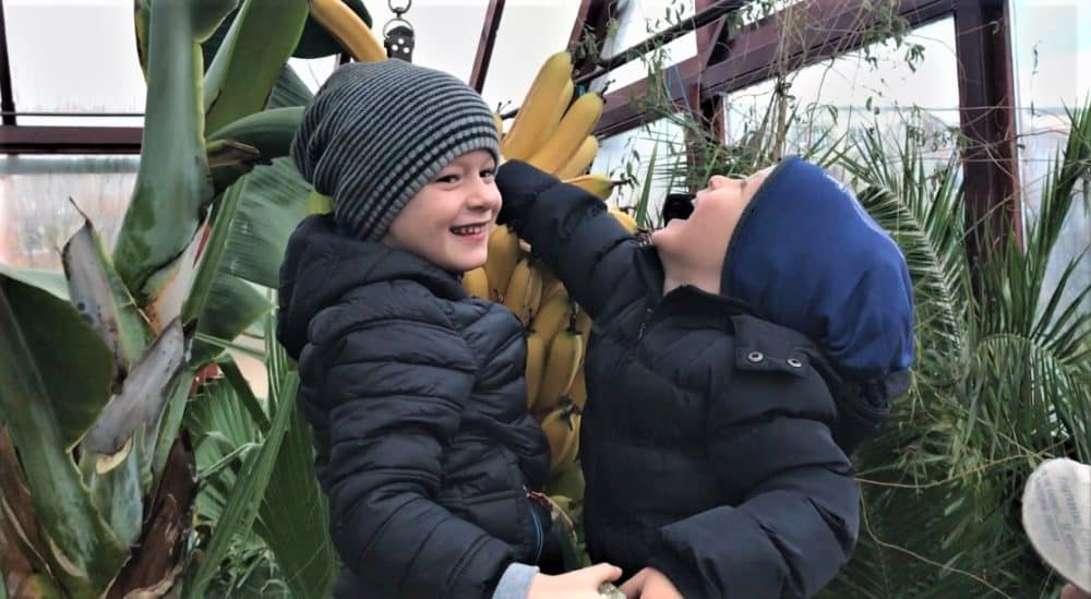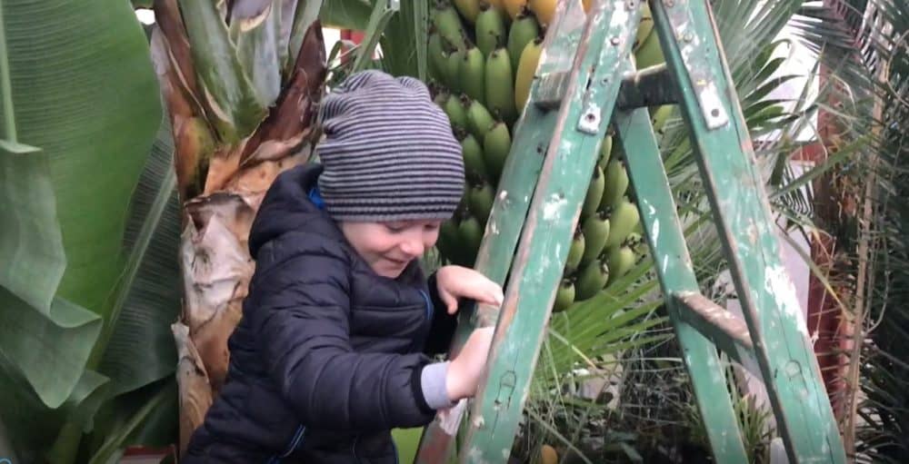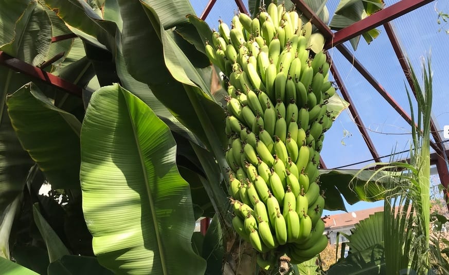 Bananierii înalți de aproape șase metri au produs în primul an câțiva ciorchini încărcați de fructe. Sunt primele banane cultivate vreodată în orașul nostru, într-o seră improvizată în microclimatul oferit de anexa unei case situate în zona Schit. Cei câțiva copii bucuroși și emoționați de misiunea pe care o au, se cațără pe o scară pentru a ajunge la primul ciorchine. În jurul lor, vegetația luxuriantă îi lasă, pentru un moment, să se viseze într-o pădure ecuatorială, sau într-o junglă tropicală și să uite că afară e final noiembrie și e frig. Câțiva lămâi, portocali și smochini încărcați de fructe, contribuie din plin la această senzație. Primele s-au copt bananele din partea de sus fiecărui ciorchine, spre marea bucurie a familiei domnului Nelu și a prietenilor săi de familie.