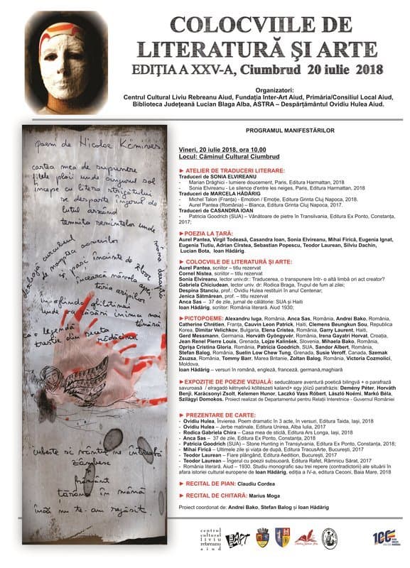 La Căminul Cultural din Ciumbrud va avea loc vineri, 20 iulie, cea de-a XXV-a ediție a Colocviilor de literatură și arte.