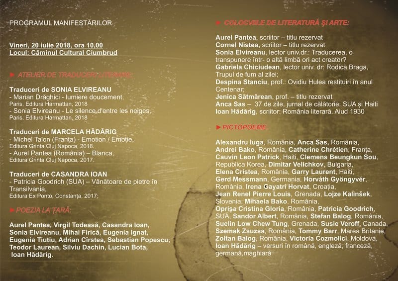VINERI: Colocviile de literatură și arte, ediția a XXV-a, la Căminul Cultural din Ciumbrud. PROGRAM
