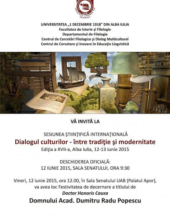 Momentul festiv face parte din programul Sesiunii ştiinţifice internaţionale a Departamentului de Filologie al Universităţii ”1 Decembrie 1918” din Alba Iulia, Dialogul culturilor - între tradiţie şi modernitate, ediţia a XVII-a.