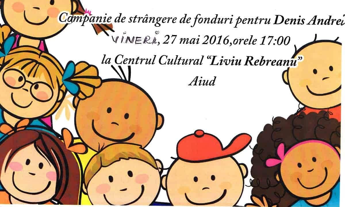 Copilul este foarte determinat să izbândească şi noi i-o dorim din tot sufletul nostru. Și mai dorim să înțeleagă faptul că îi suntem alături şi dacă altceva nu putem, putem aduce tot oraşul să-i fie aproape. Plănuim aceasta pentru data de vineri, 27 mai. La Centrul Cultural “Liviu Rebreanu” va fi un „Târg de inimioare”, o campanie de colectare de fonduri pentru Denis, viitor portar de fotbal dar care, momentan, se războieşte cu o afurisită de tetrapareză spastică”, a transmis președintele Asociației “Maria Agapia” Aiud, dr. Adriana Câmpean.