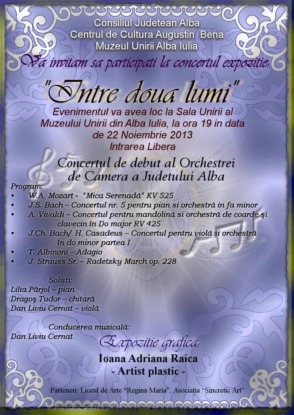 VINERI: „Între două lumi”, concert - expoziție la Sala Unirii din Alba Iulia. Orchestra de Cameră a județului Alba susține primul său recital