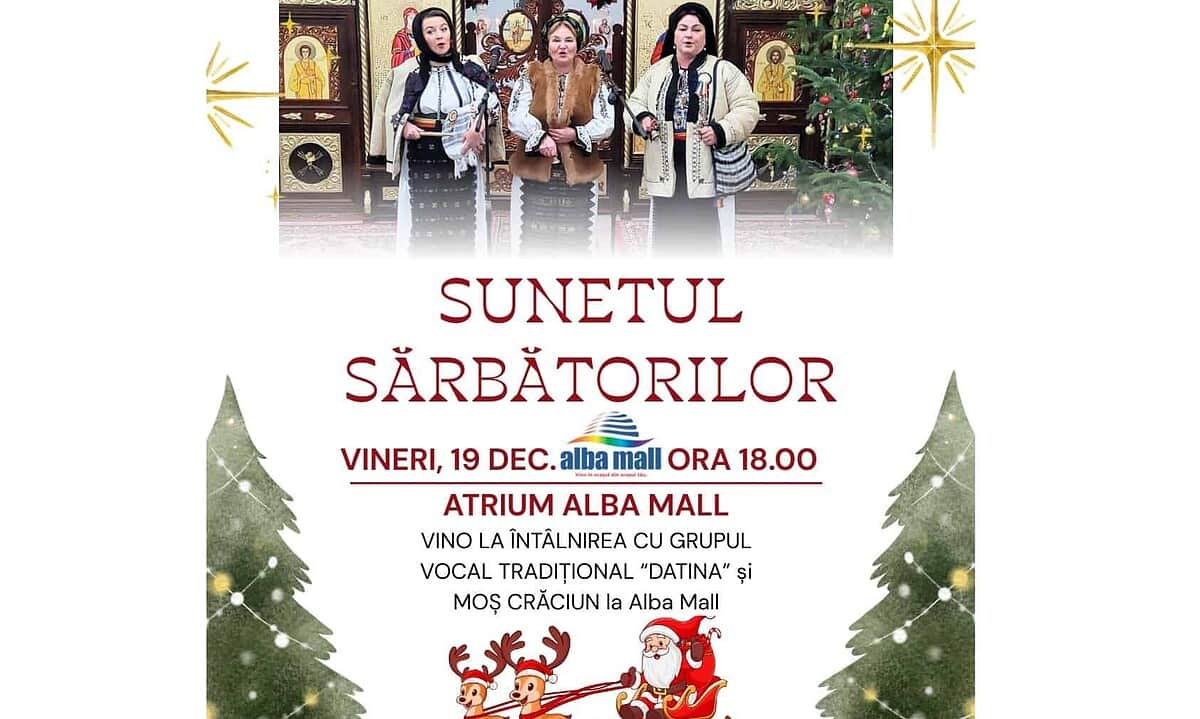 Atmosfera sărbătorilor de iarnă se instalează la Alba Mall vineri seara. Pe 19 decembrie, începând cu ora 18:00, centrul comercial va găzdui un concert de colinde tradiționale susținut de grupul vocal Datina, iar cei mici vor avea ocazia să-l întâlnească pe Moș Crăciun.
