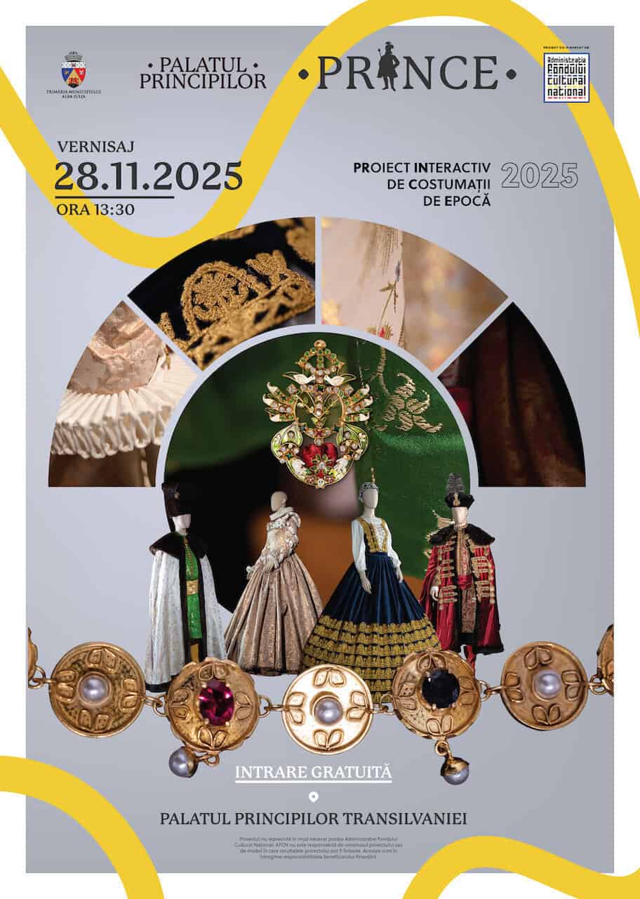 Vernisajul expoziției P.R.I.N.C.E., un eveniment care îmbină istoria vestimentară cu tehnologia modernă, va avea loc vineri, 28 noiembrie, de la ora 13:30, la Palatul Principilor din Alba Iulia.